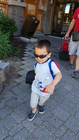 Nous voila donc en route pour le Canada, comme des touristes. Et Oscar avec sa valise, on dirait vraiment une star en vacances :