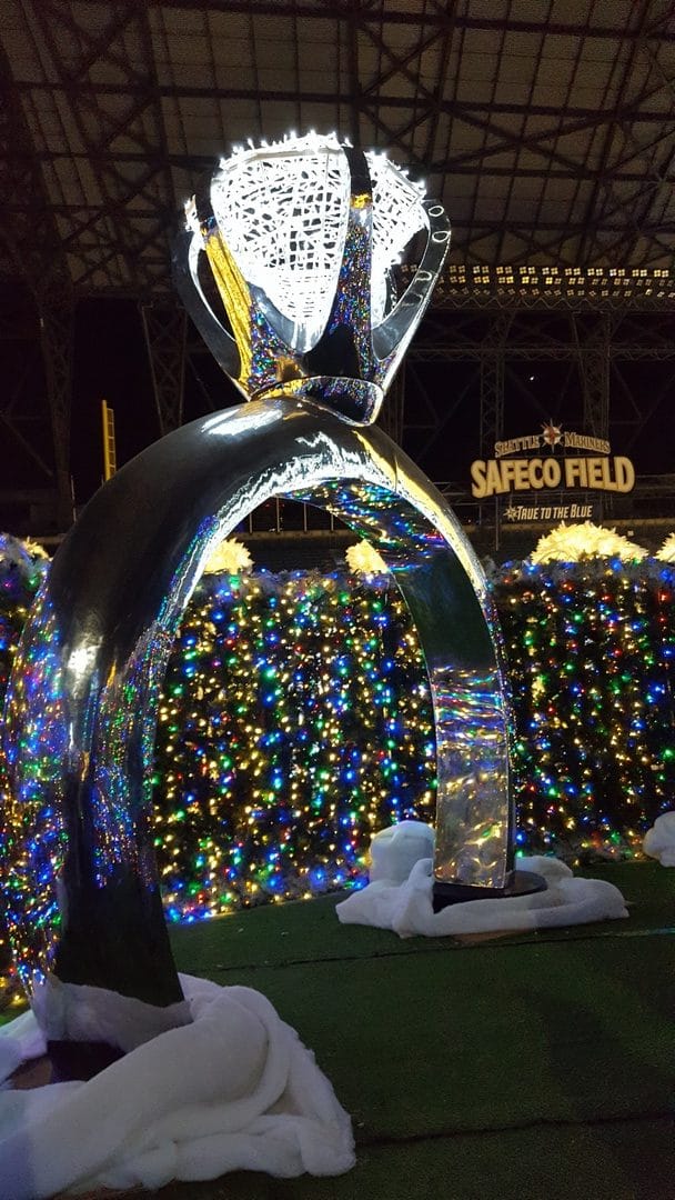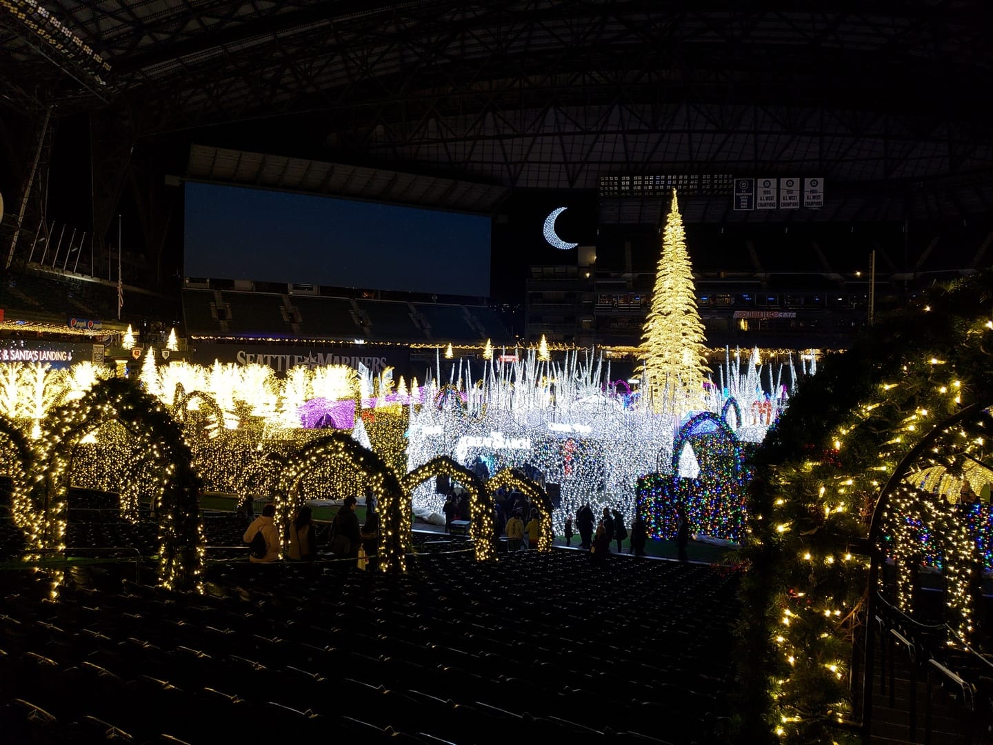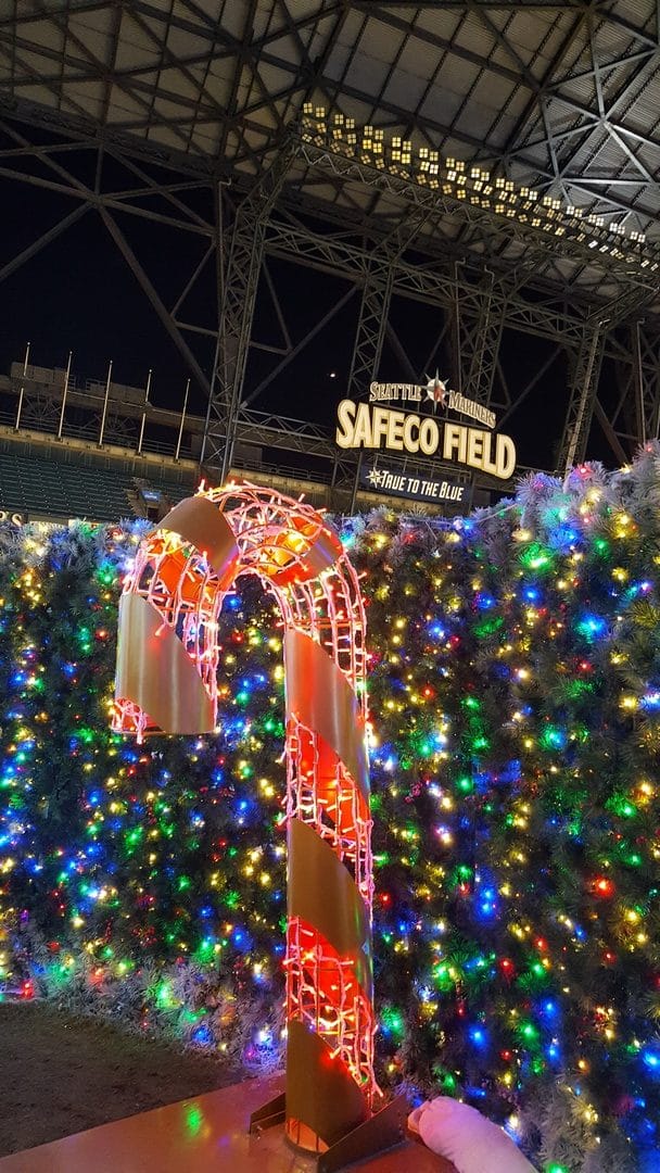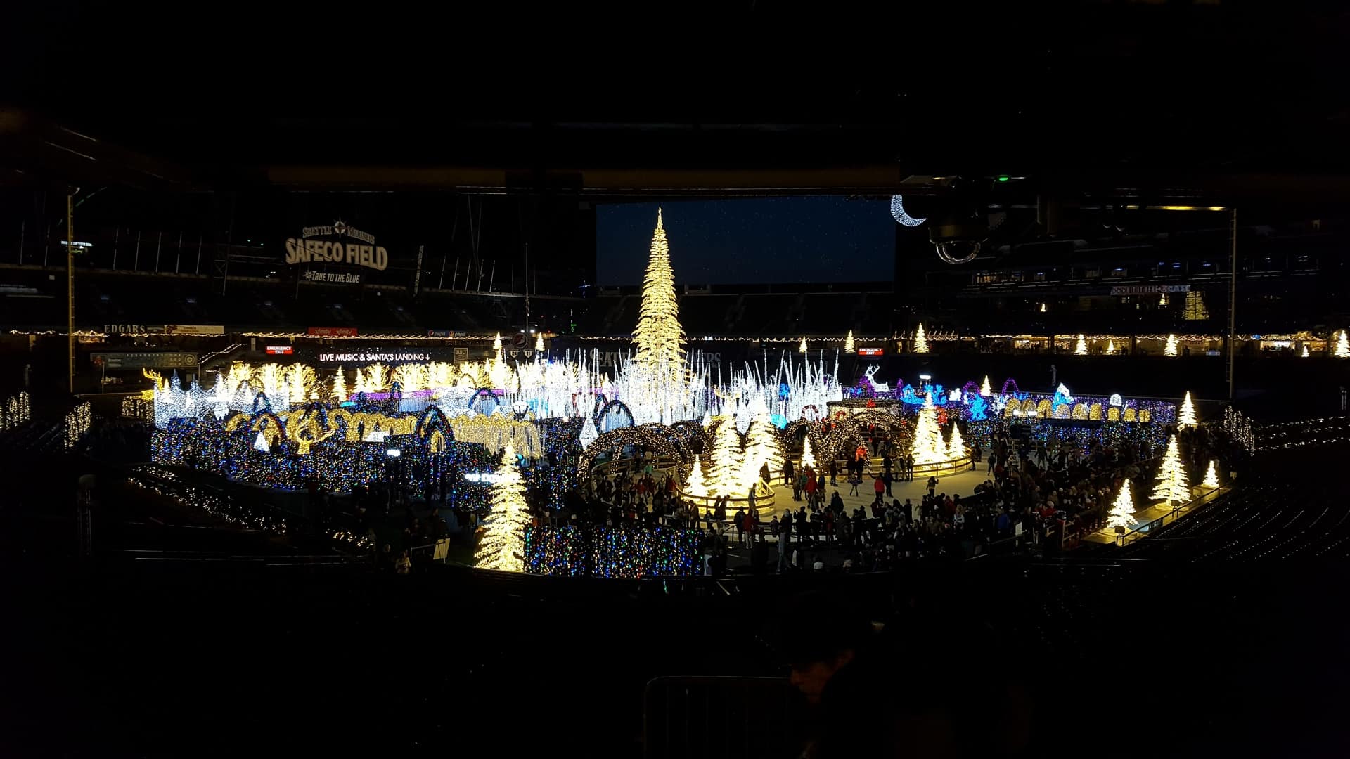 Pour l’occasion de Safeco Field (le stade de Baseball de Seattle) est transformé en immense jardin de Noel.